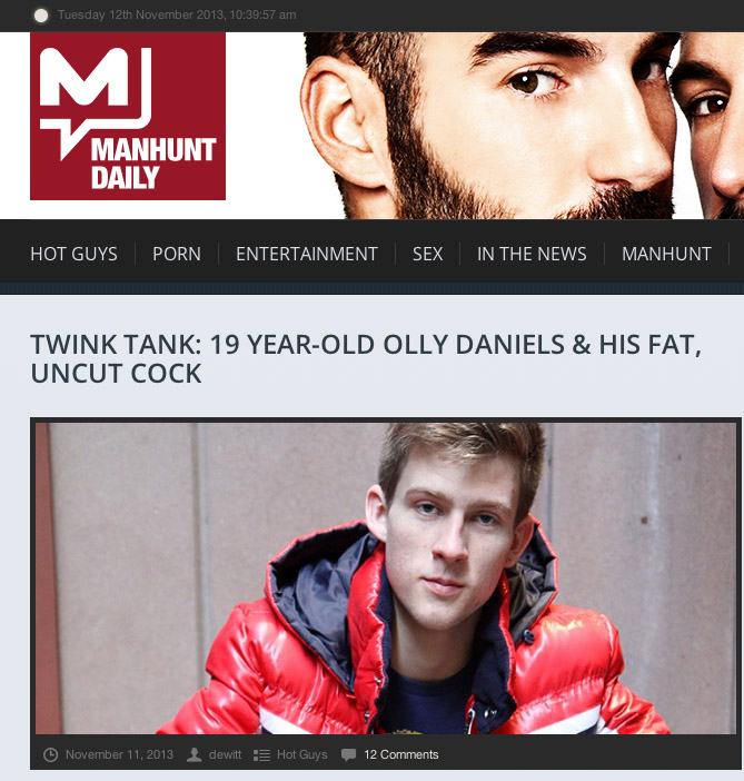 I love seeing some of the big sites picking up on the cute guys I shoot with.  Today was Olly’s turn to pop up on ManhuntDaily.  Olly Daniel’s has been one of the most popular guys on the site this year.  He has been a lot of fun to shoot with too. I have some fun scenes starring Olly coming up.